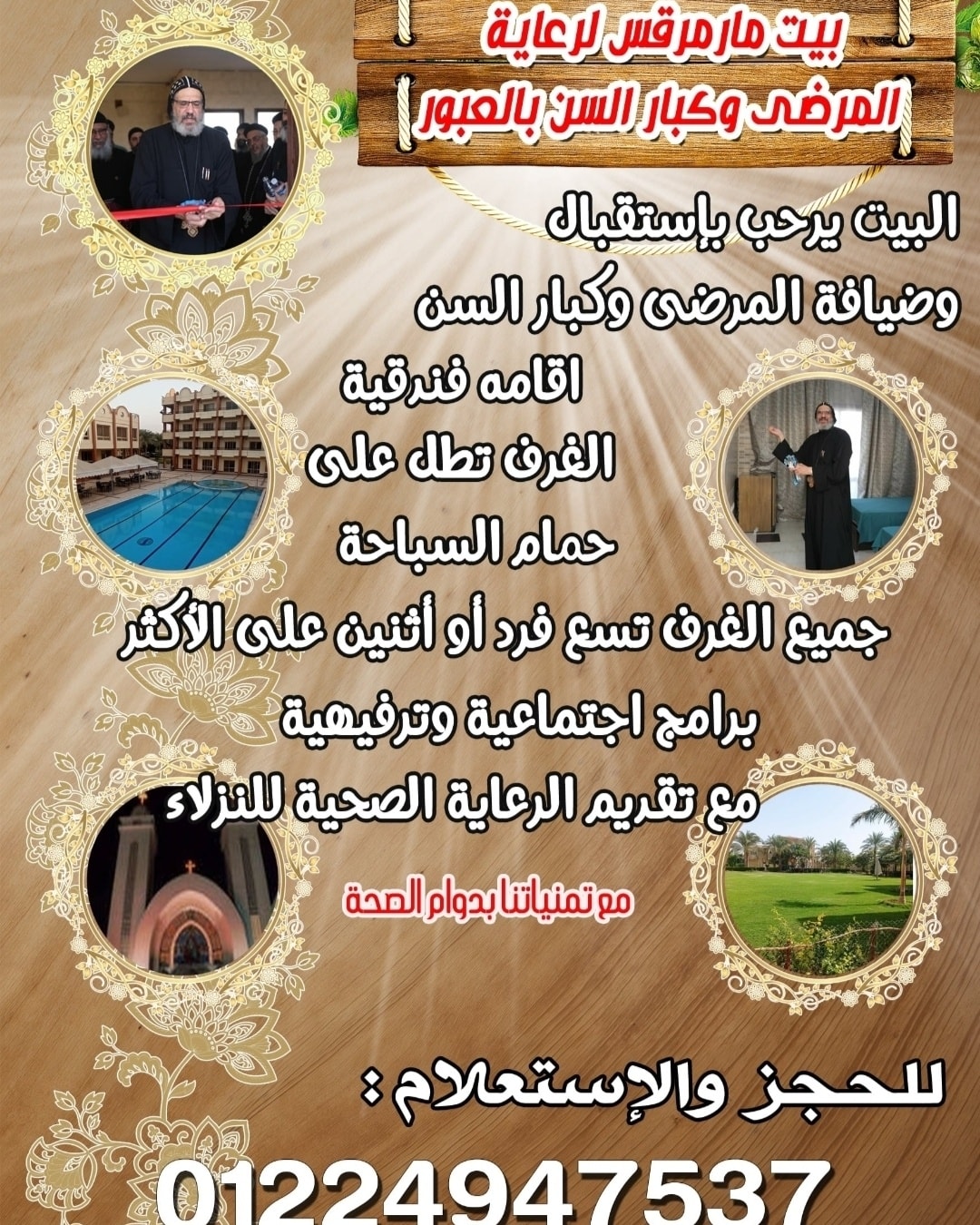 مرافق متوفرة فى بيت مارمرقس لرعاية كبار السن