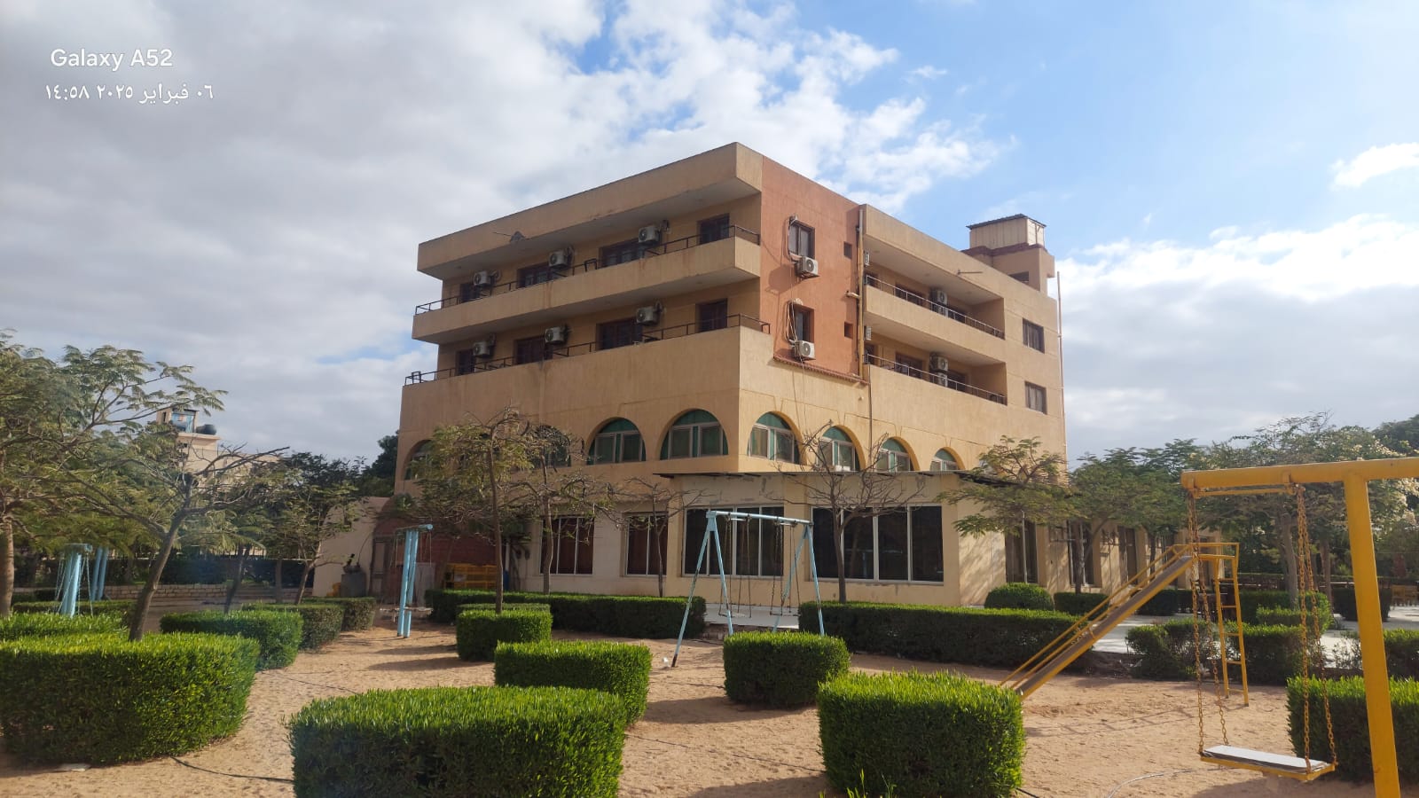 -حديقة للأطفال بها مراجيح وألعاب مختلفة.