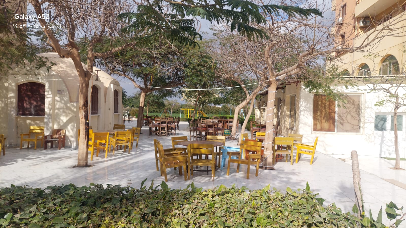 - توجد 8 برجولات كبيرة وسط أماكن خضراء تسع 300 فرد تقريباً بالإضافة لأماكن مظللة تسع 500 فرد.